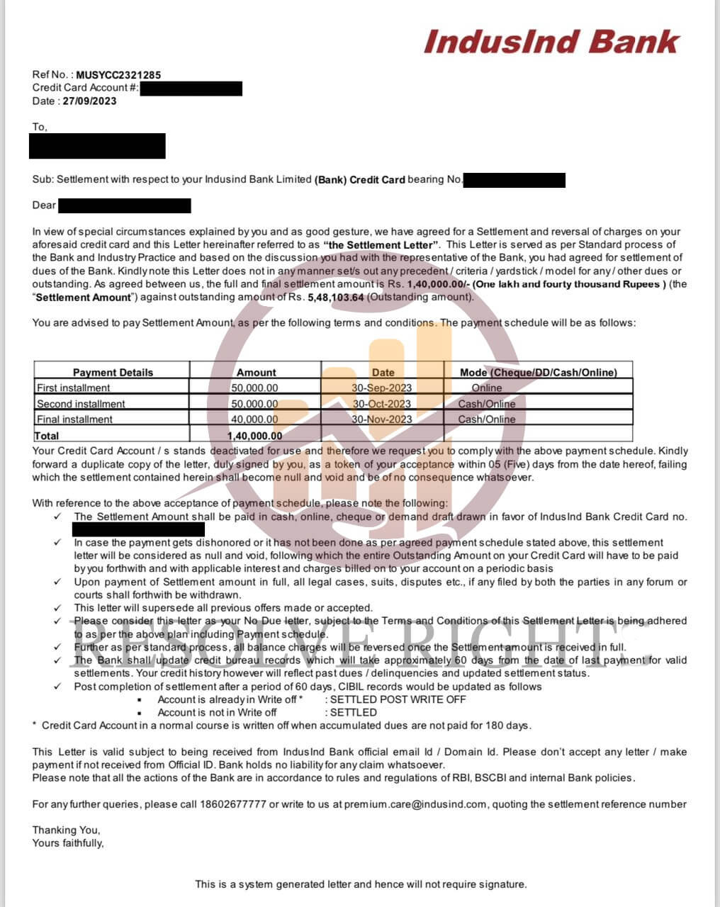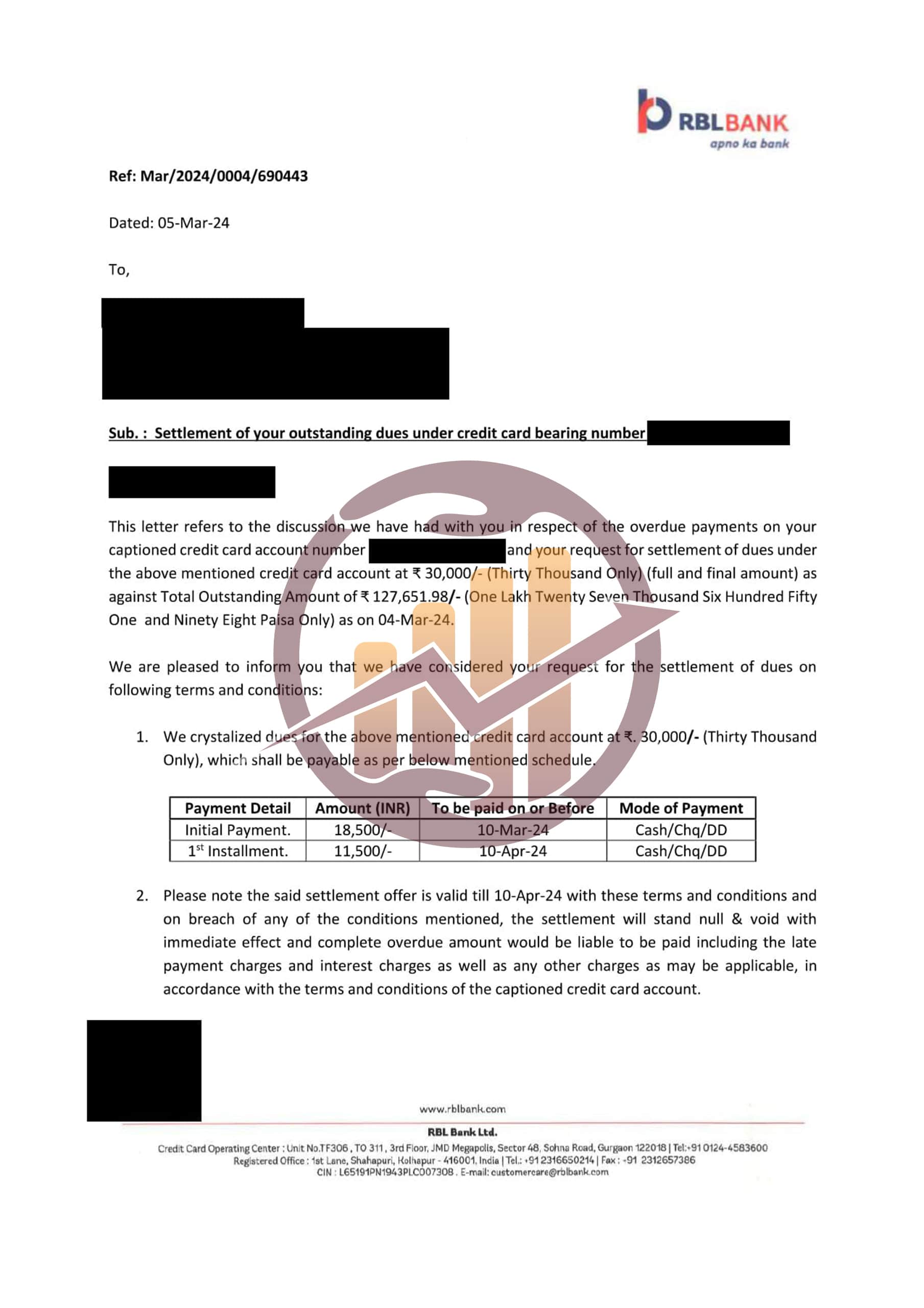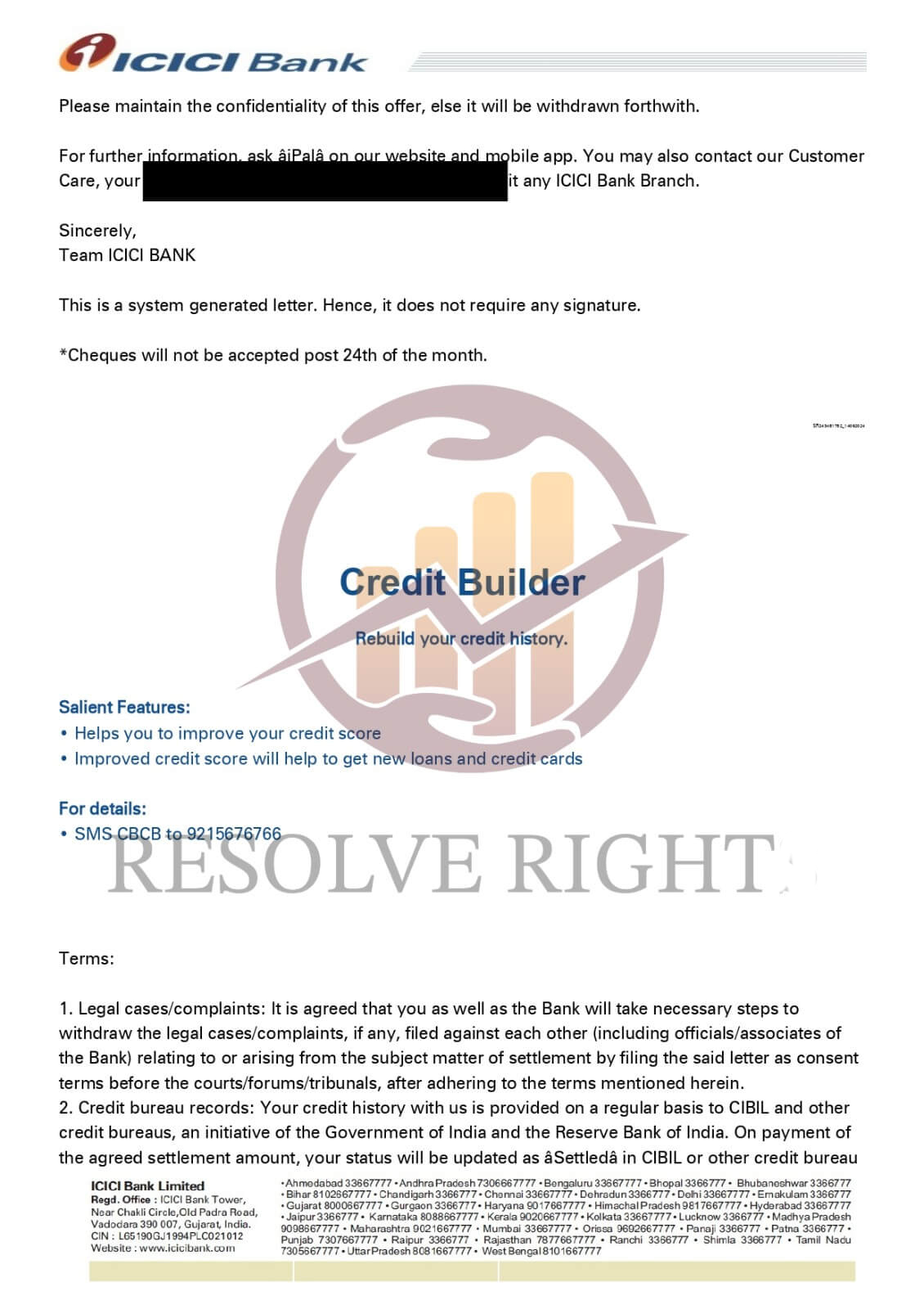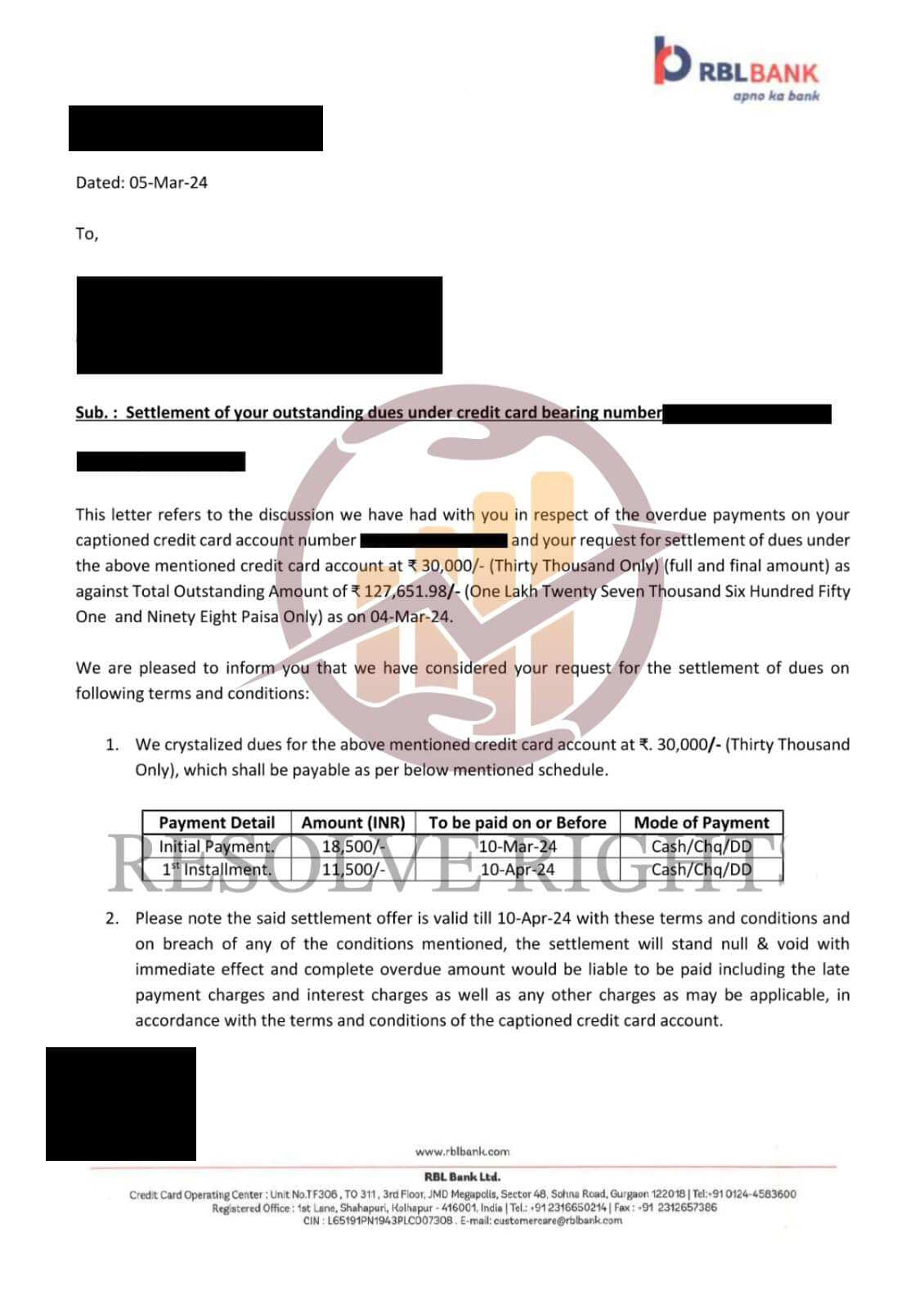 Resolve Right successfully negotiated my ICICI Bank settlement and guided me with timely updates. I’ve received my NOC and am confident about resolving the remaining issues.