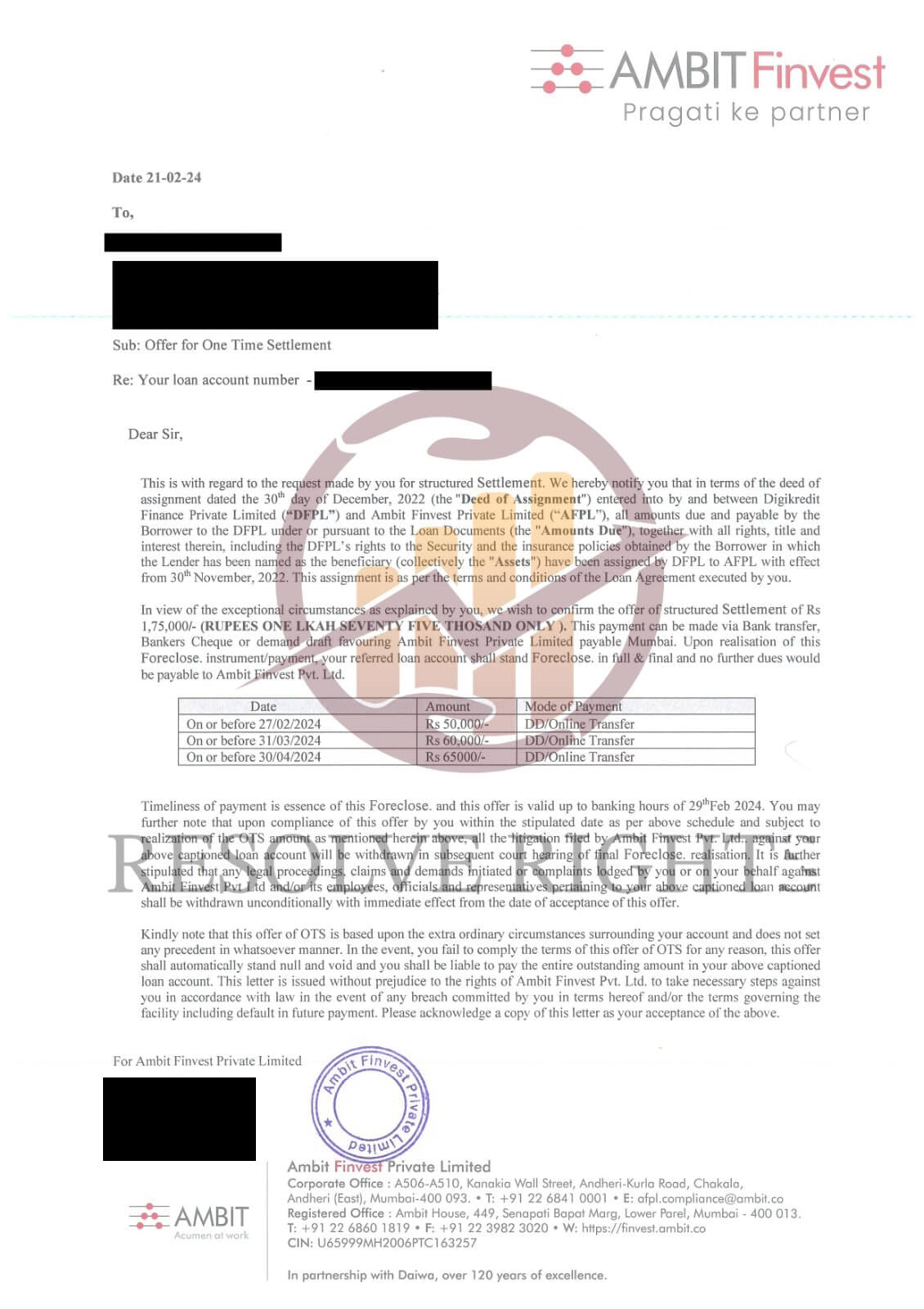 Resolve Right successfully reduced my Kotak Mahindra Bank loan and guided me with consistent, timely updates.