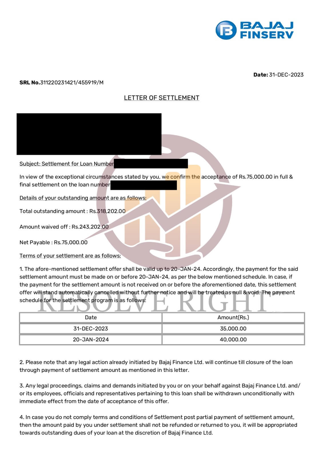 In today’s world, where the global pandemic has exacerbated economic uncertainties, many individuals find themselves struggling with loan repayments, facing the daunting prospect of defaulting on EMIs. At Resolve Right, we recognize the toll this can take on your finances and peace of mind. That’s why we specialize in providing loan settlement and debt settlement services tailored to your unique circumstances.